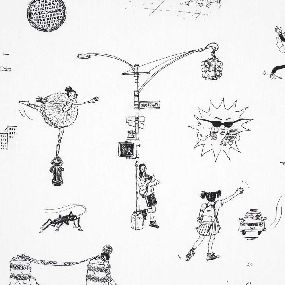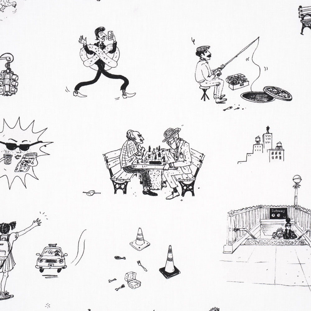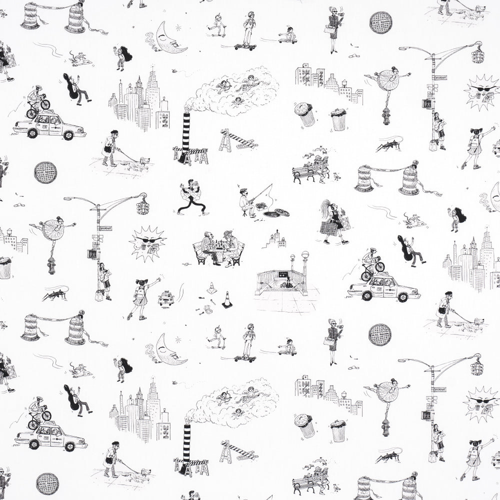 Part of the New Yorker Collection, this charming fabric captures everything we love about the Big Apple—rats and all. A loose arrangement of whimsical urban vignettes illustrated with a quirky, stylized hand, Joana Avillez’s Street Scenes is a fun small-scale fabric design that makes an entertaining statement wherever it goes. Also available as a wallpaper. -