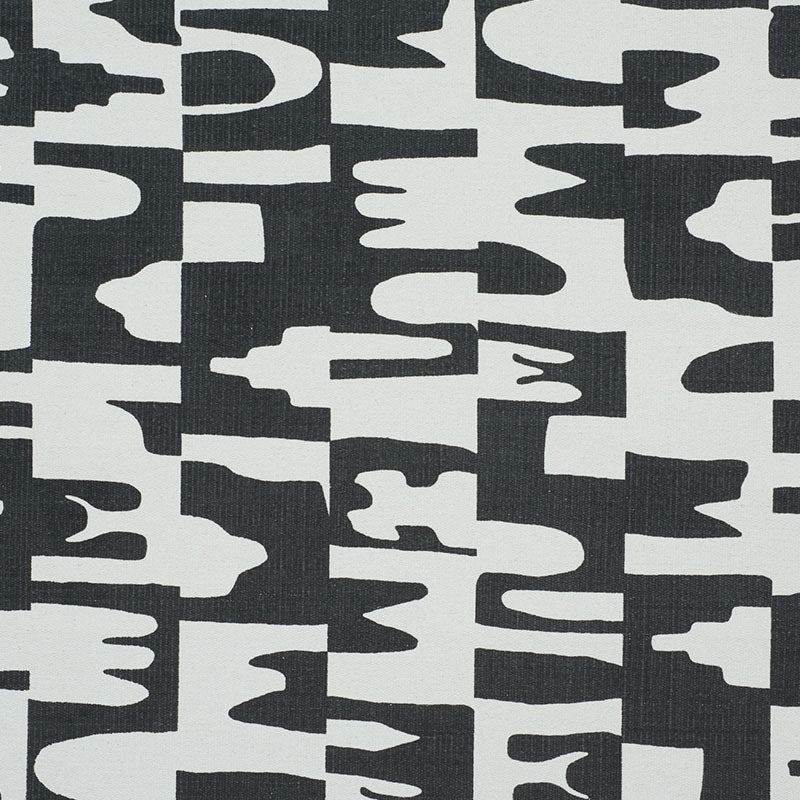 Based on an antique cloth, Copp features an abstract pattern with an asymmetrical border. Printed on a textured flatweave ground, it's an incredibly durable option for upholstery. -