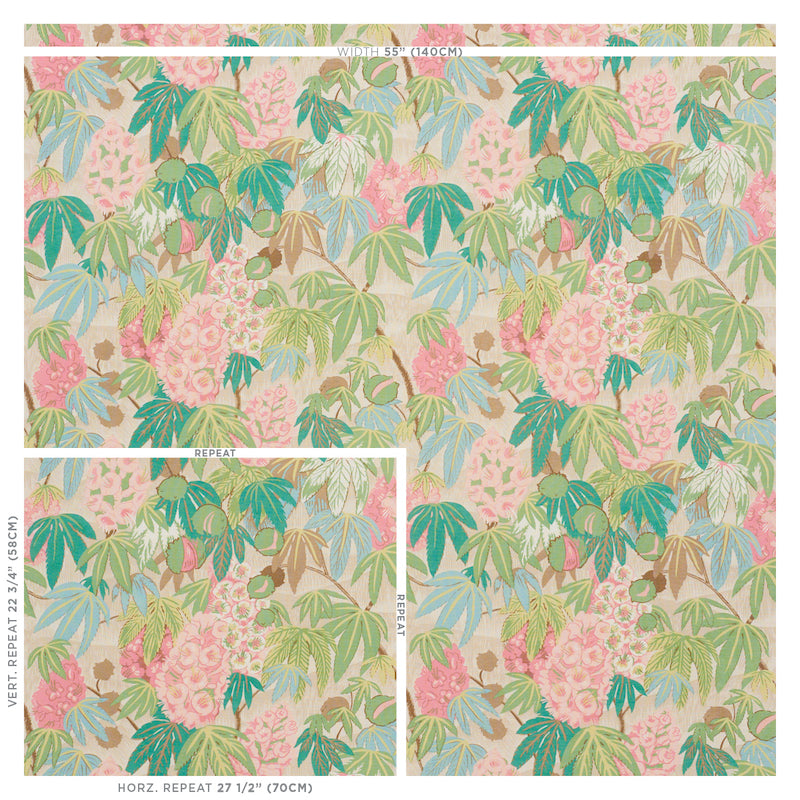 Call it tiki chic: a bright, sunny explosion of blush tropical blooms and fronds on a background of stylized bark, this retro-revival print gains new life with an updated palette and incredible depth and dimension. -