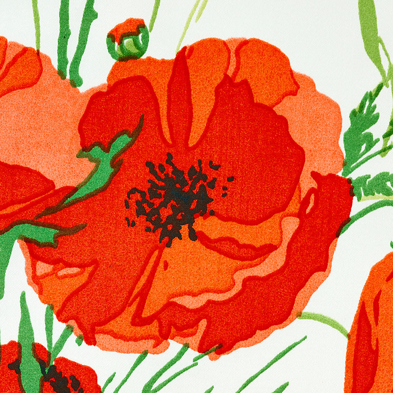 Posies of bright poppies are the centerpiece of this joyful floral from our archives. A classic chintz finish that makes it a shoe-in for sunny upholstery. -