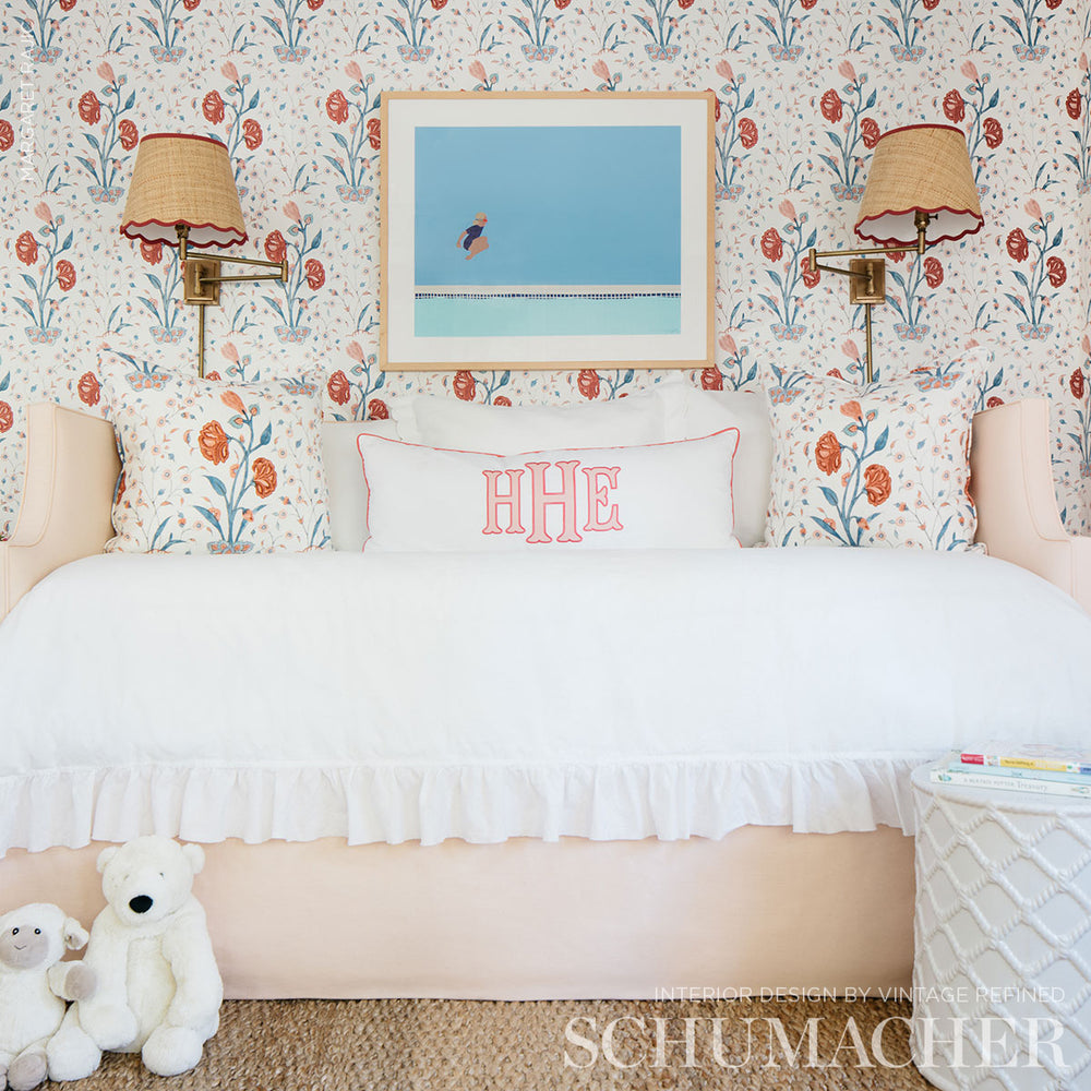 A simple, stylized floral inspired by traditional Indian motifs, this lovely, large-scale pattern has the nuanced look of a hand block print. Also available as a fabric. -