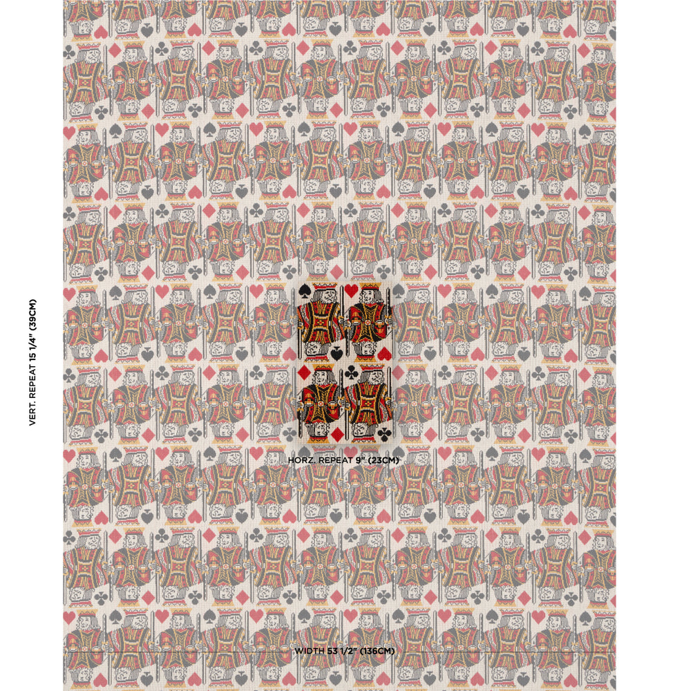 A playful novelty pattern, King Épinglé adds fun and games to any room. Featuring regal playing card motifs rendered in a dense cotton loop construction, this super-durable medium-scale fabric is perfectly suited for upholstery or pillows. -