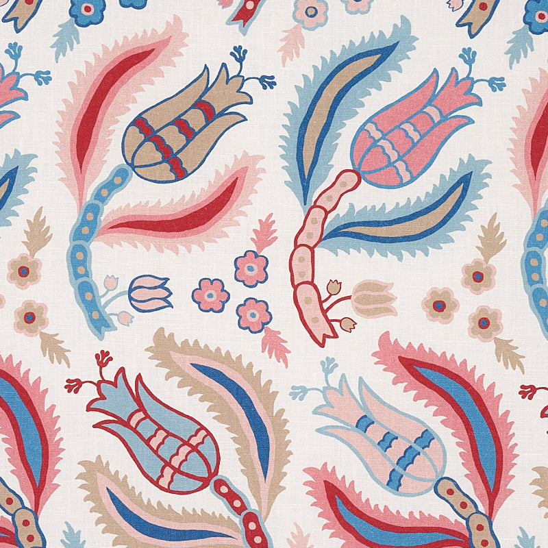 With vibrant, twining Ottoman-inspired vegetation covering nearly every inch of the fabric, sky-and-rose midscale cotton Malabar Vine is an incredible celebration of color and pattern. Part of our East Meets West collection. -