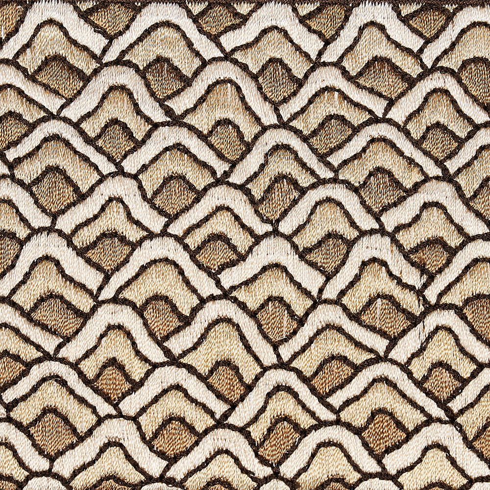 Tiny, irregular, and totally delightful, Sunrise Embroidery Tape's all-over scallop pattern in sand is embroidered for a whimsical, organic aspect. -